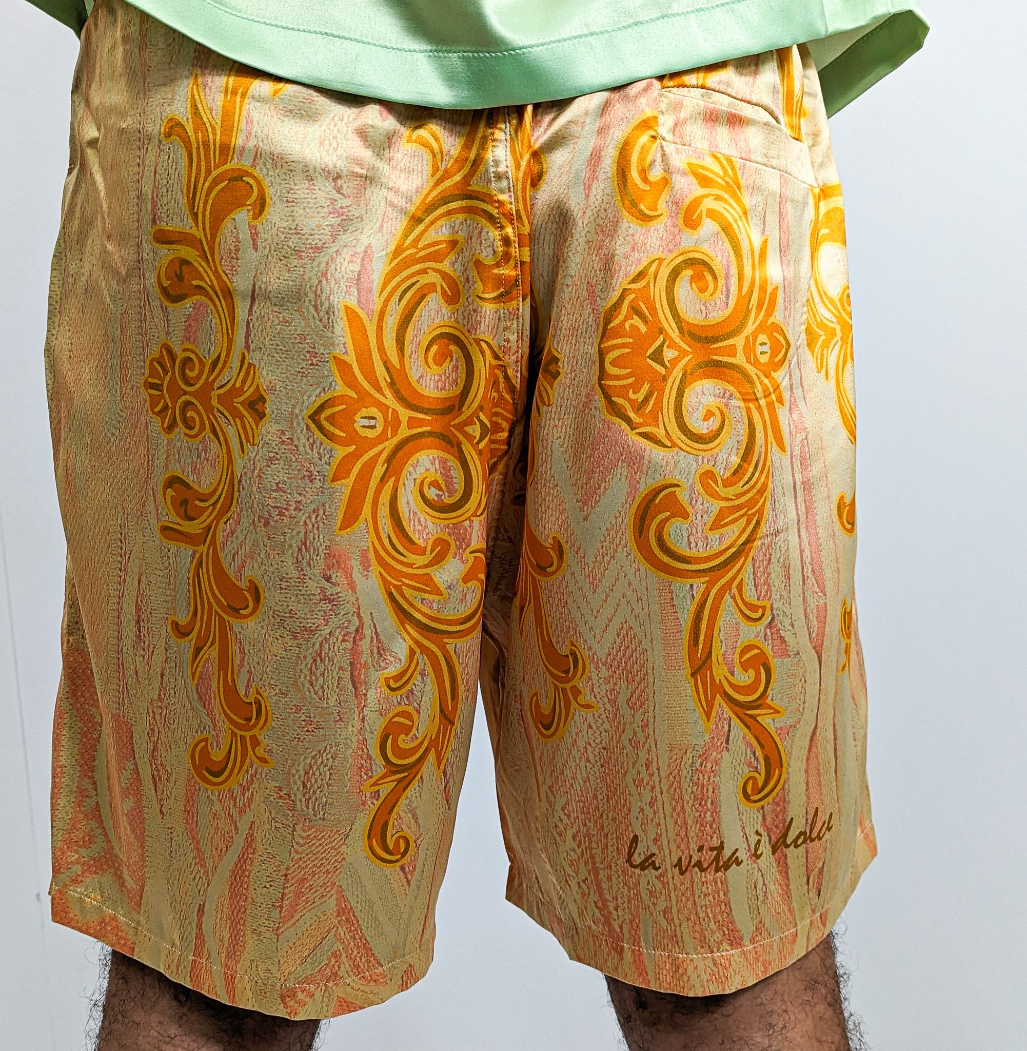 Produktinformationen "Carlo Colucci Ruffle Satin Optik Shorts Yellow"