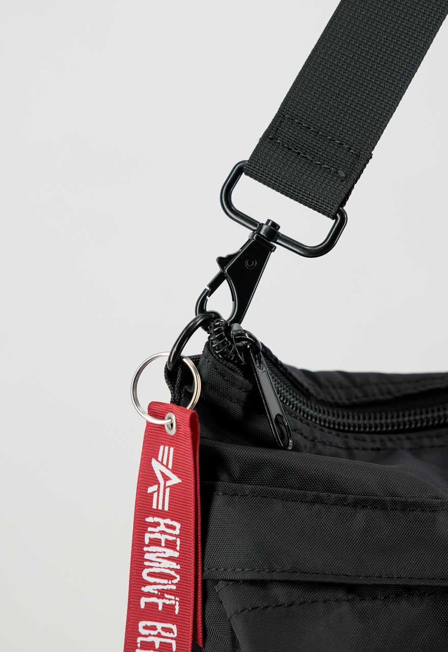 Der RBF Keyring am Reißverschluss verleiht dieser Tasche nicht nur einen coolen Look, sondern ermöglicht es Ihnen auch, Ihre Schlüssel sicher zu verstauen und immer griffbereit zu haben.