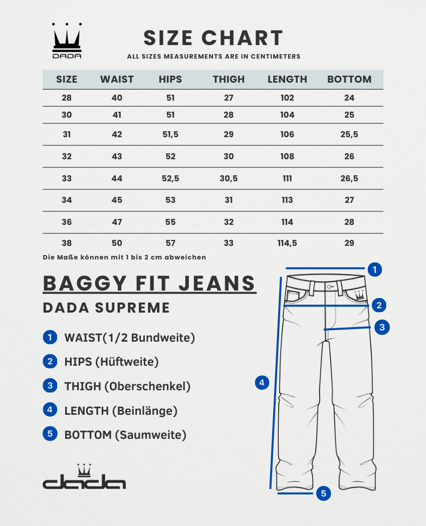- Model trägt Größe 32 (70kg /1,8m)